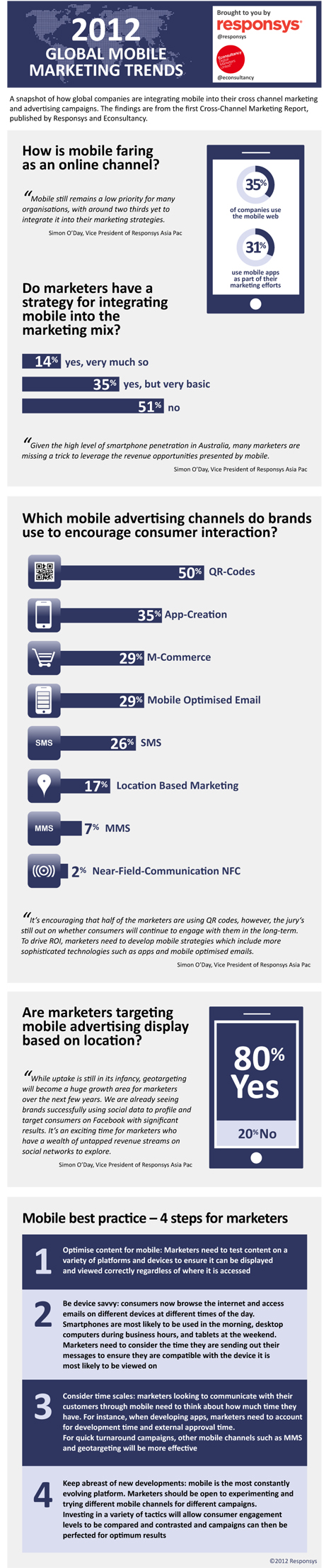 The below are findings from Responsys and Econsultancy’s first report into how global companies are integrating mobile with cross channel marketing and advertising campaigns.
