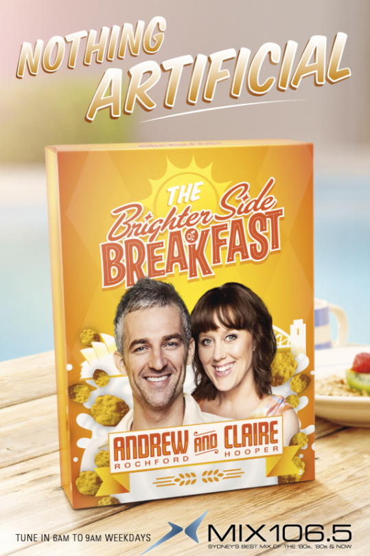 The Australian Radio Network has launched a campaign to promote its new breakfast team of Andrew Rochford and Claire Hooper, who host the Brighter Side of Breakfast show on Mix 106.5.