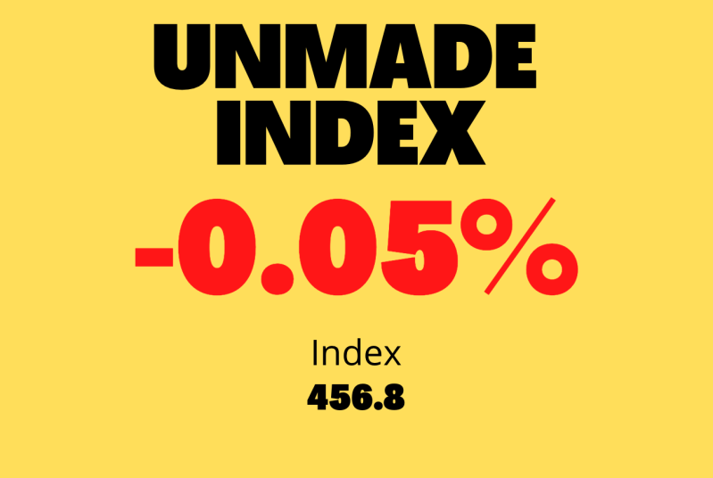 The biggest stock on the Unmade Index, Nine, was one of the few to finish the day in positive territory, ending up by 1.8%. As a result, despite the sea of red, the Unmade Index was only down slightly closing on 456.8 points, down by 0.05% for the day.