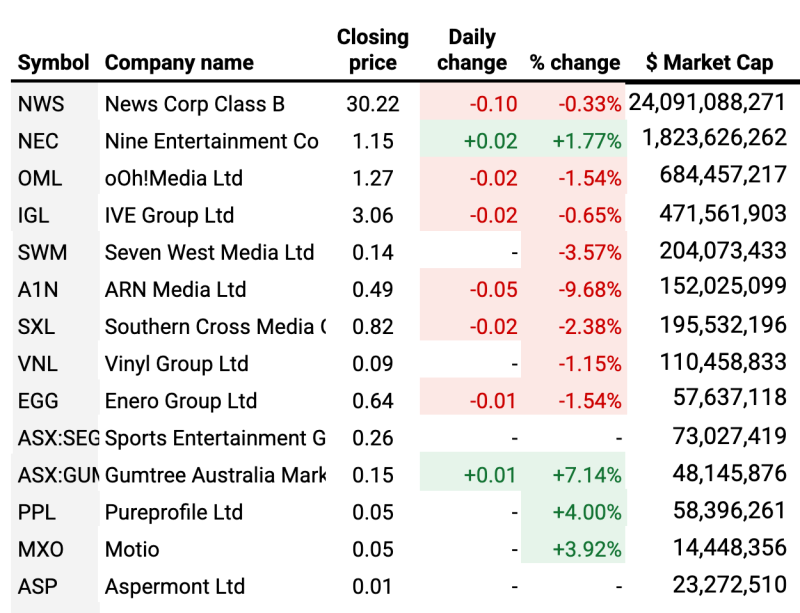 ARN Media’s grim update on the state of the Australian advertising market dragged down most stocks on the Unmade Index today.