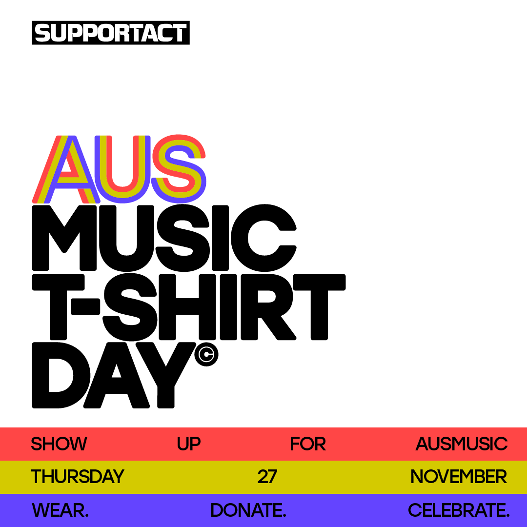 AusMusic T-Shirt Day is a national day of joy and recognition underpinned by a meaningful cause. Anchored around the call to action Show Up for AusMusic, the campaign invites Australians to Wear. Donate. Celebrate. and help ensure that Support Act can keep showing up for music workers when times are tough.