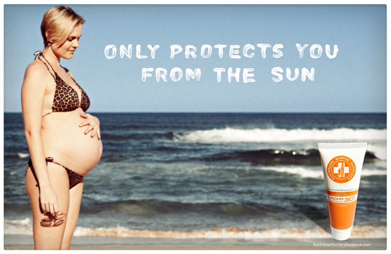 at first glance I read the pregnant one as implying it doesn’t protect your unborn child. problem in my opinion is that the cool/hip/surf culture tone is talking to a bunch of people who don’t tend to worry about using sunscreen.