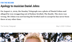 The Sunday Telegraph issues apology to musician Daniel Johns for brothel reporting 6 years ago Shape 2