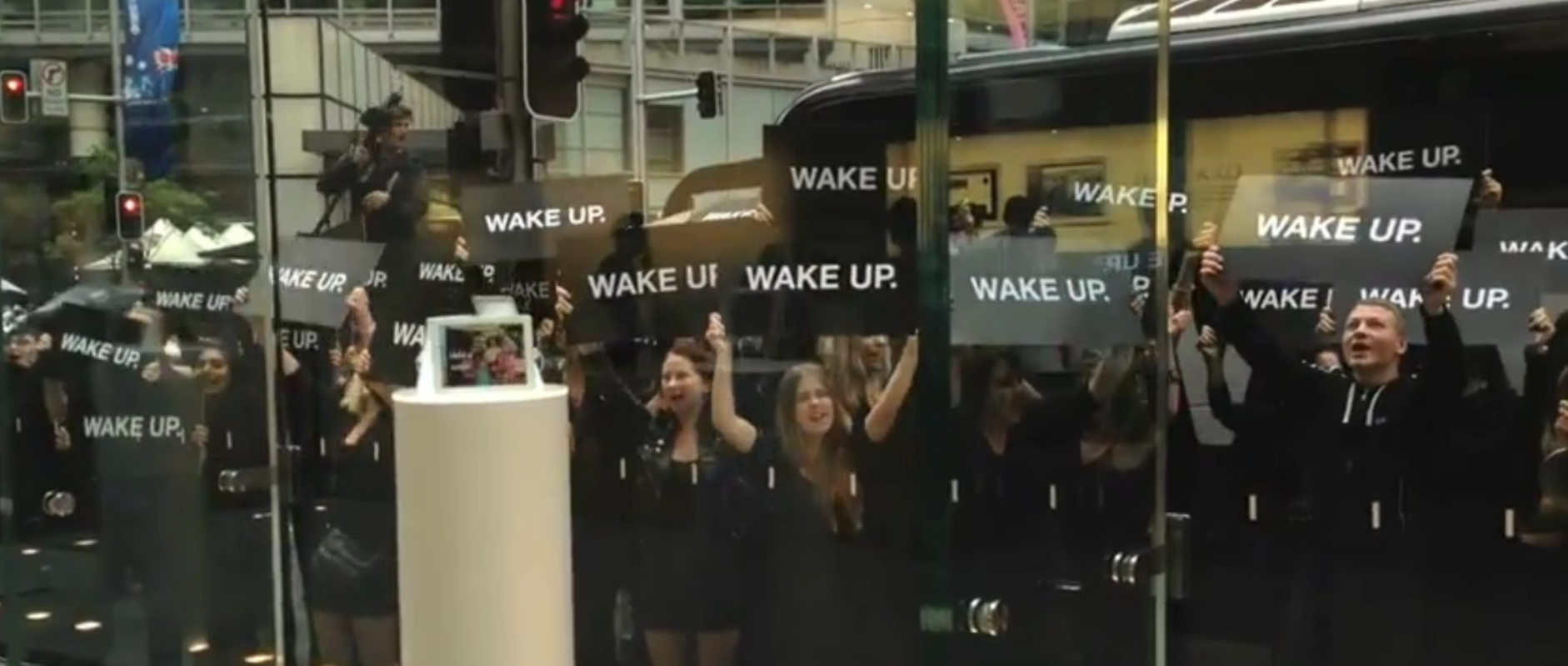 After much speculation, BlackBerry owner Research In Motion has confirmed that it is behind the ‘Wake up’ campaign, which has seen protest-style experiential activity hit Melbourne and Sydney over the past week.