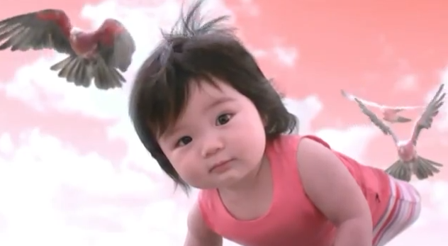 The ad is shot in a variety of locations, from an open ocean to a cityscape at night to, features flying babies and pink pigeons to the tune of a reworked version of ‘White Christmas’ by Irving Berlin.