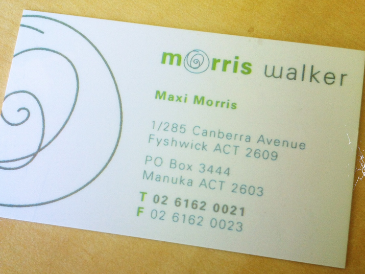 Maxi the Jack Russell cross at Morris Walker PR’s office in Fyshwick, Canberra, even has her own business card.