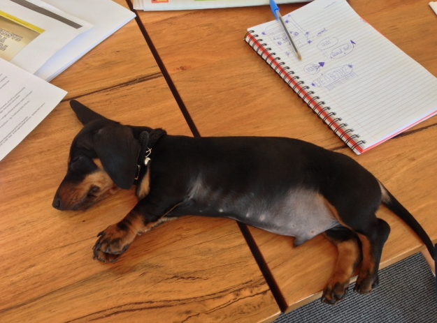 Marlon the resident Dachshund puppy at BMF Melbourne.
