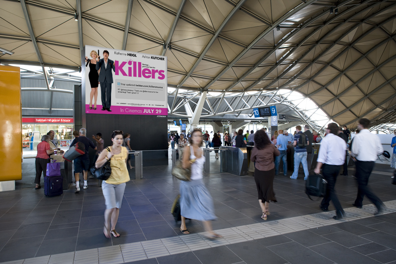 The digital network at Southern Cross Station includes of one large 4 x 3 metre screen plus six smaller screens. Approximately 1,000,000 passengers enter and exit Southern Cross Station each week.