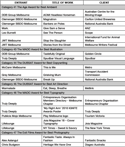Chairman of the judges, ECD of M&C Saatchi Sydney Ben Welsh, commented: “The best work was amongst the best work you’d see anywhere in the world and in most categories the standard of entries was pretty high – there were few embarrassing moments of what the fuck were they thinking.”