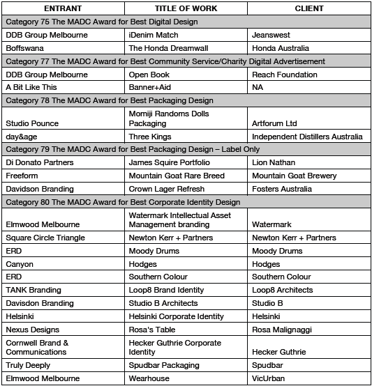 The design category was led by ERD, with seven finalists. Also looking likely to pick up metal were Truly Deeply with six finalists, Canyon, Elmwood, Davidson Branding, Cornwell and Square Circle Triangle.