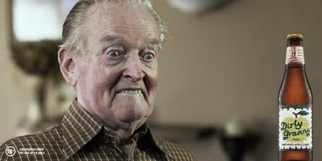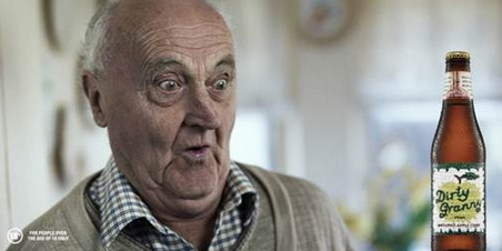 The campaign features elderly men pulling startled faces at a bottle of Dirty Granny Apple Cider.