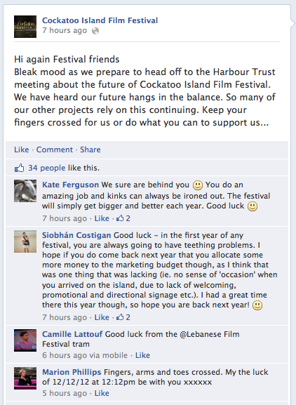 Sentiment from the festival’s Facebook fans was positive this morning however when the festival first voiced its concern the meeting:
