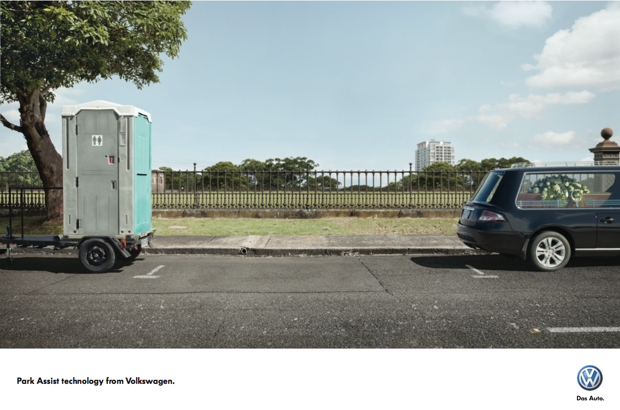 The idea behind the ads is that any parking spot, no matter how precarious it may seem, is easy to negotiate with VW’s Park Assist technology.
