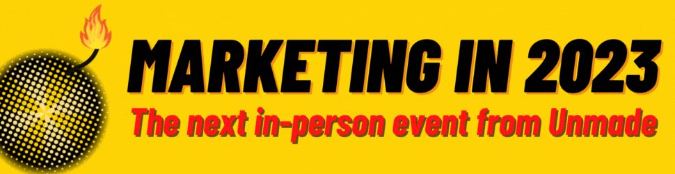 Unmade’s paying members get two complimentary tickets to our Marketing in 2023 event promoted in the ad above. At the bottom of this page, you’ll find the discount code you need to access it.