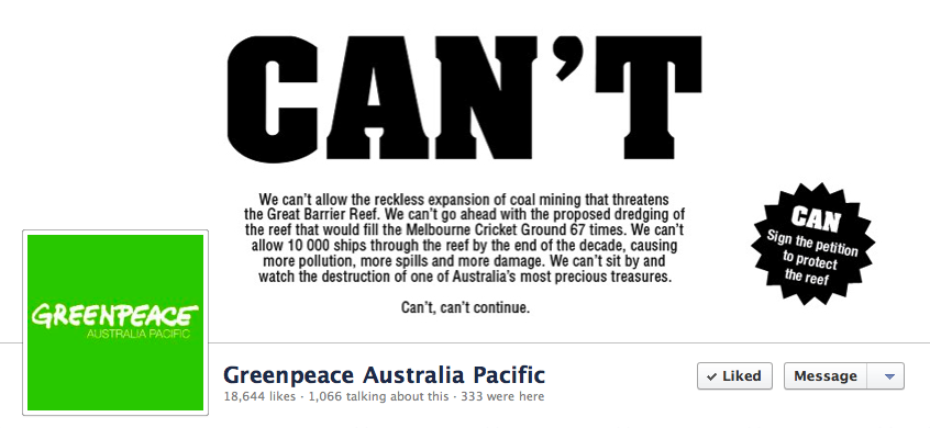Greenpeace has also used the Can’t culture jam on its Facebook page.