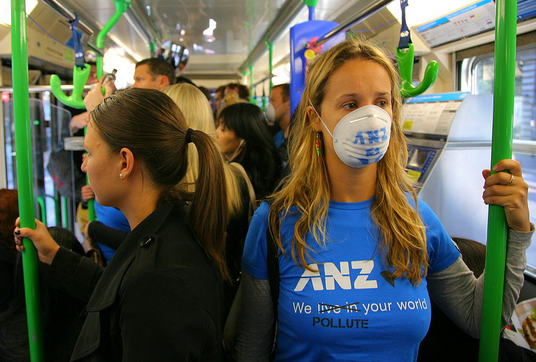 Greenpeace has been directly targeting ANZ at and around the bank’s headquarters in Melbourne with advertising subverting the ANZ advertising strapline. “We live your world” has been changed to “We pollute your world.”