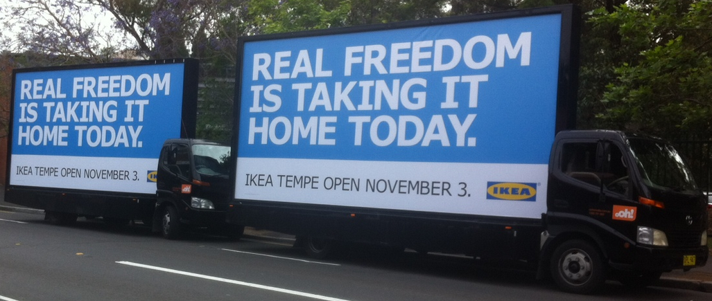 Ikea has launched an outdoor campaign to promote its newly opened store in Tempe that mocks the service offered by rival Freedom Furniture.