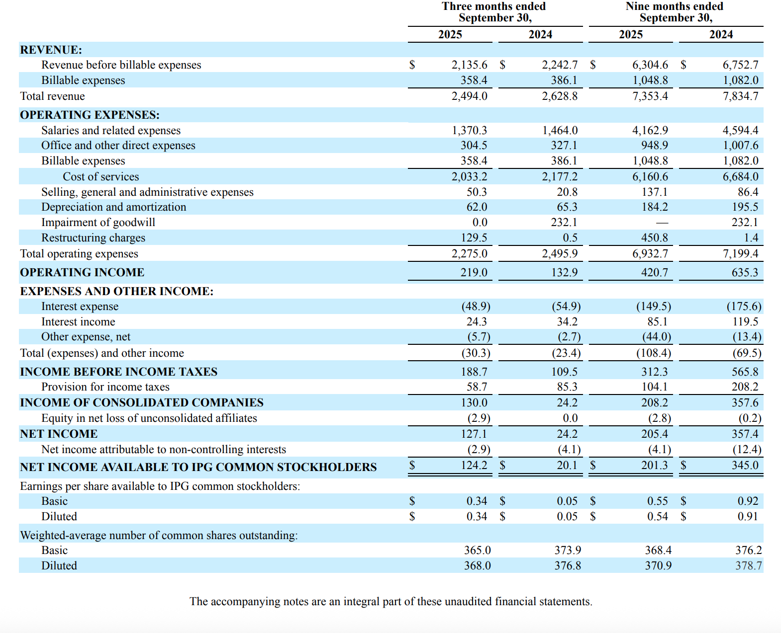 Elsewhere in its quarterly filing, IPG revealed it had total revenue of US$2.494 billion for the September quarter, down from US$2.629 billion in the same quarter last year. Its revenue for the first three quarters of the calendar year was US$7.353 billion, down from US$7.835 billion in 2024.