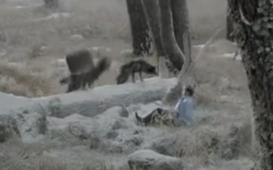 Daniel G – actually I would prefer to see the wolves rip the man to shreds and more. With all the abuse that we inflict on animals, I’m all for animal violence against men.