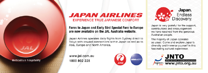 Yuki Hino, regional sales and marketing director at Japan Airlines, said: “Although parts of Japan has been severely damaged by the earthquake, with the exception of the Tohoku region, most of the other regions of this country remain completely untouched. Travel is still functioning normally within the unaffected regions of Japan. Japan Airlines would like to invite all Australians to come and experience the true beauty of Japan.”