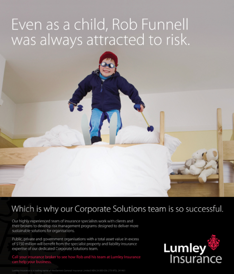Lumley Insurance has launched a print campaign to show its passion for risk. Created by Sydney agency The Concept, the ads will run in national newspapers such as The Australian and the trade media.