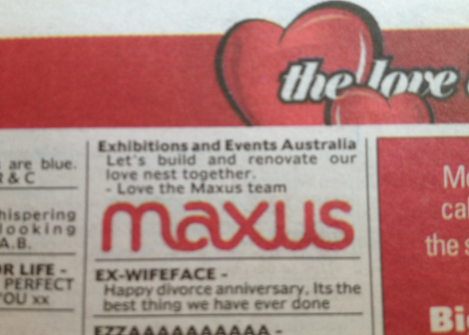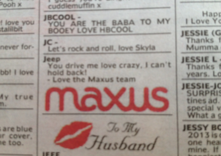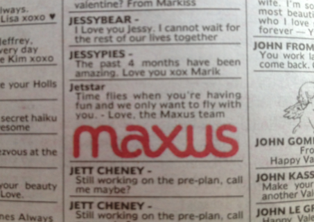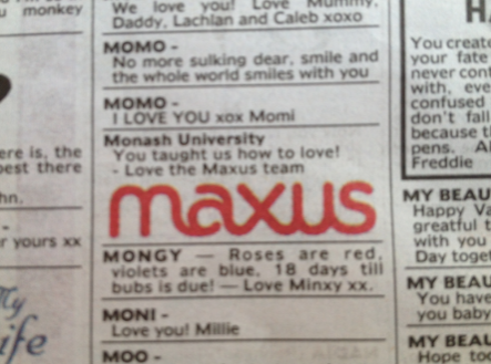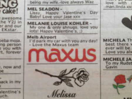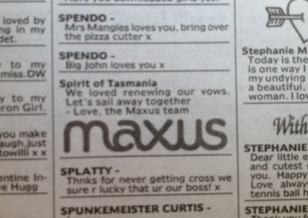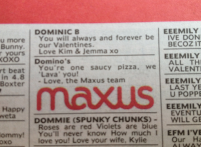 Maxus is showing its entire client list some Valentine’s Day love with a series of ads devoted to them in the Herald Sun and The Daily Telegraph today.