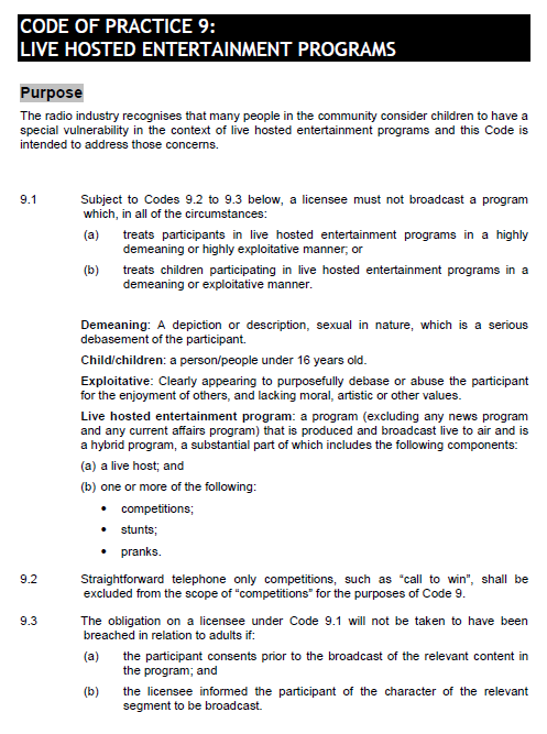 The code, which was developed by Commercial Radio Australia, comes two years after an incident on2Day FM’s Kyle & Jackie O breakfast show, when a 14-year old girl revealed that she had been raped live on air during the show’s lie detector segment.