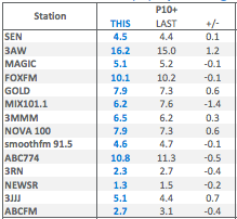 The station’s drivetime audience also grew slightly, up 0.2 percentage points to 12.8% share Monday to Friday, but it is probably too early to say whether the impact of the sacking presenter Derryn Hinch in late August had any baring on the result.