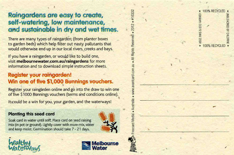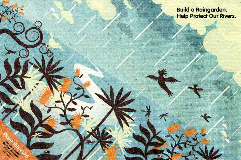 Titled ‘Build a Raingarden’, the card can be planted to grow a lemon-scented bottlebrush.