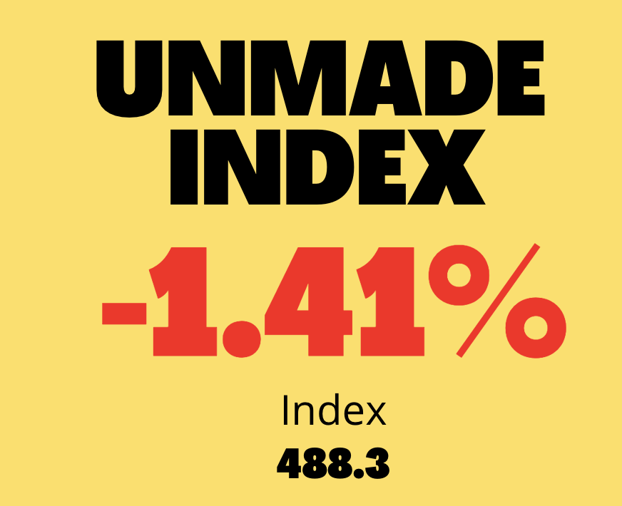 The Unmade Index closed down 1.41% for the day, on 488.3 points.
