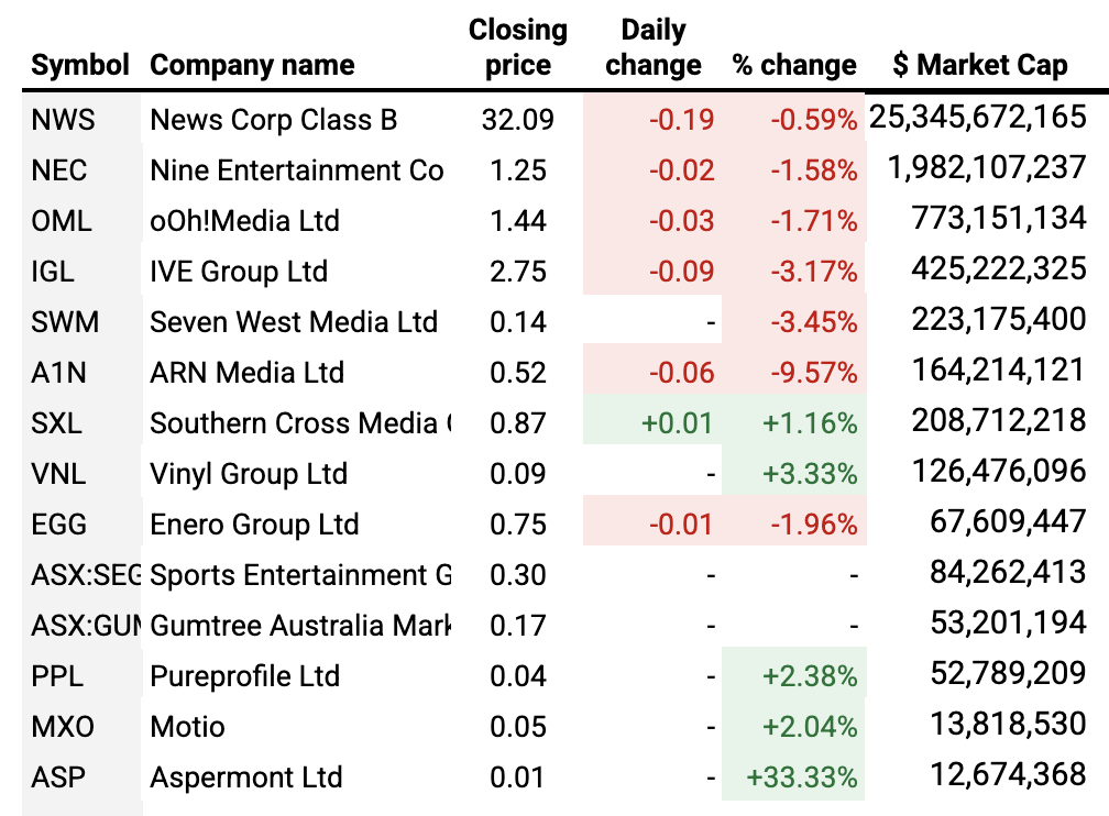 ARN Media gave back half of last week’s gains in a rough day on the Unmade Index.