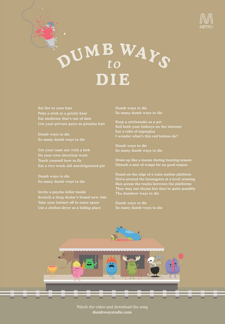 @John culvenor, I have found a new dumb way to die, read that dribble you typed out. Well done Metro, very clever ad