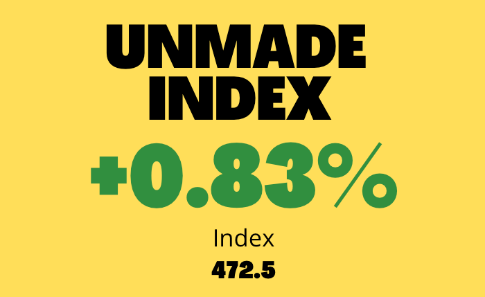 The Unmade Index outperformed the wider ASX All Ordinaries, closing on 476.4 points, up by 0.8% for the day. The ASX All Ords was up 0.4%