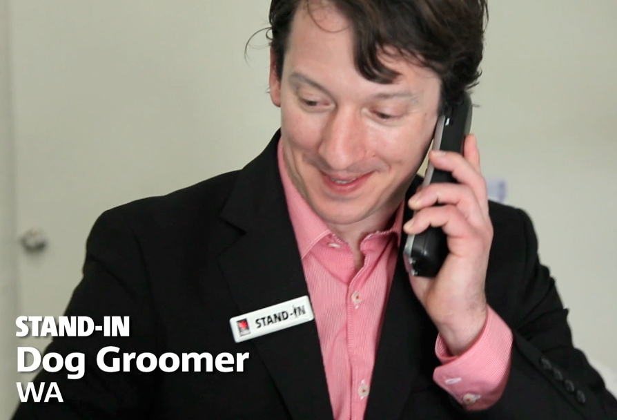 Did NAB get David Mitchell as a ‘stand-in’ for the WA dog groomer pic?