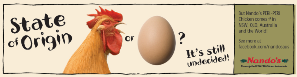 Restaurant chain Nando’s, which split with The Sphere Agency in May, has launched a tactical ad based on tonight’s State of Origin decider.