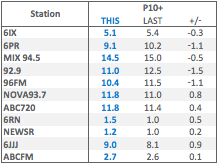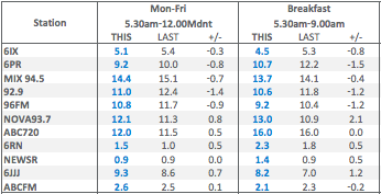 The station was overtaken by Nova93.7 and ABC720, which grew share to 12.1% and 12%, respectively.