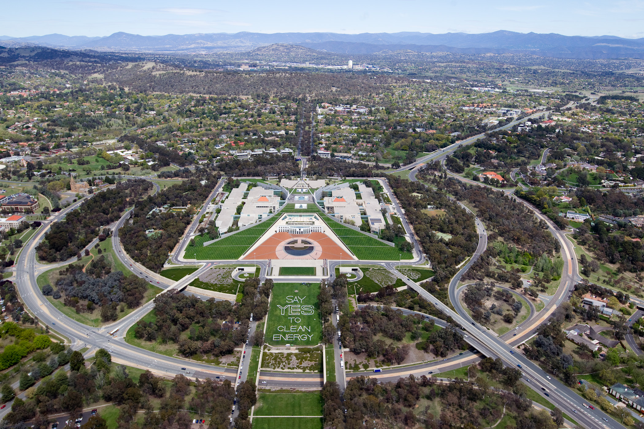 The Say Yes Australia pro-carbon tax campaign yesterday saw a large collection of placards at parliament house spell out the words ‘Say Yes To Clean Energy’.