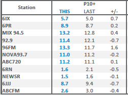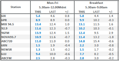 Southern Cross Austere’s Mix still put in a good showing however with a climb from 12.8% to 13.2% listenership.