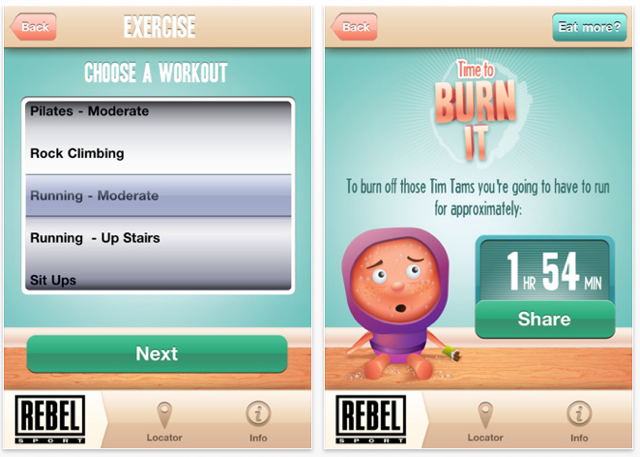 Rebel Sport iPhone app calculates exercise needed to burn off food