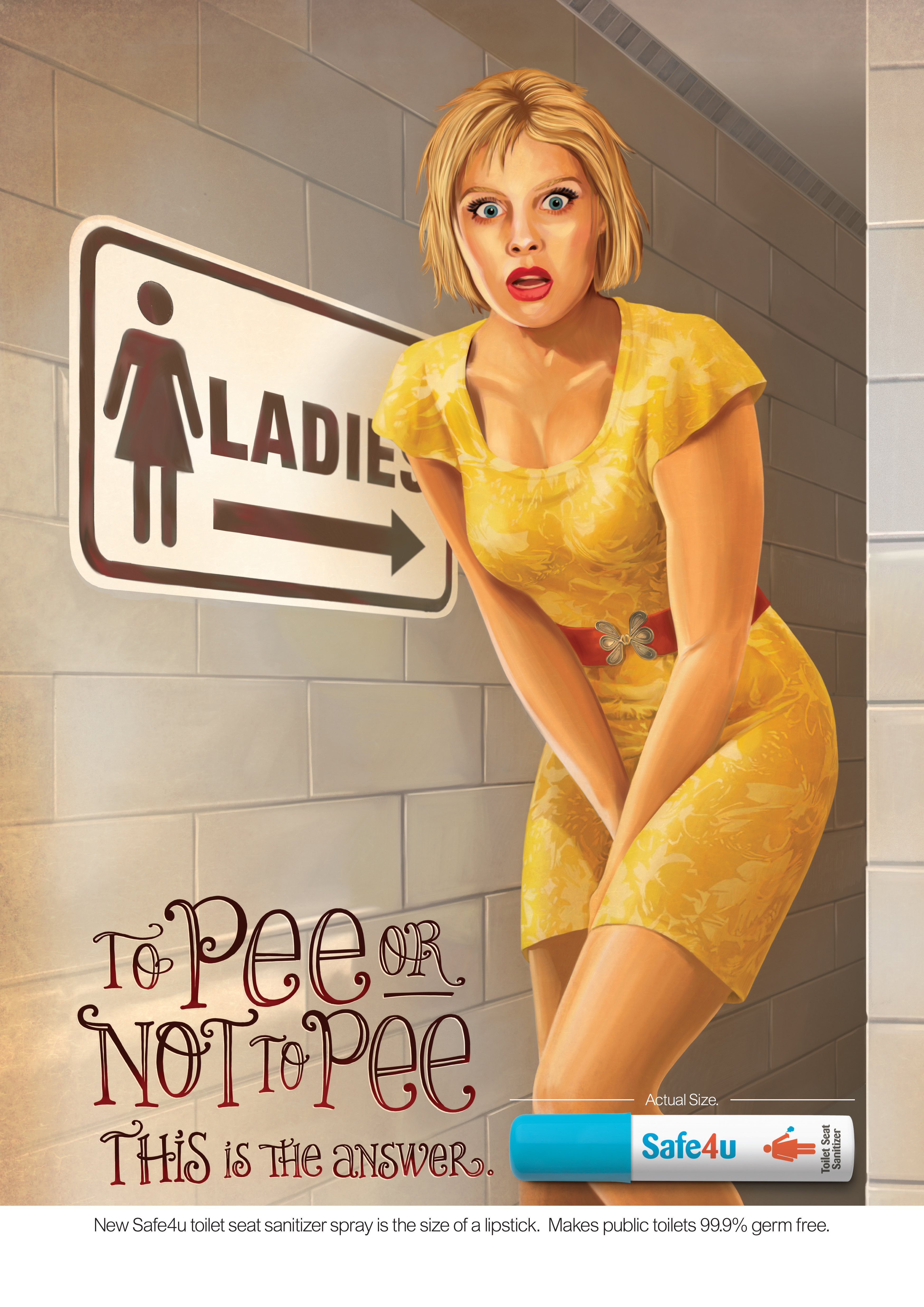 “To pee or not to pee, this is the answer” is the campaign line for the toilet sanitizer Safe4U. Designed for women to use in public toilets, the McClintocks brand uses radio, print and online ads. The campaign was created by In our time.
