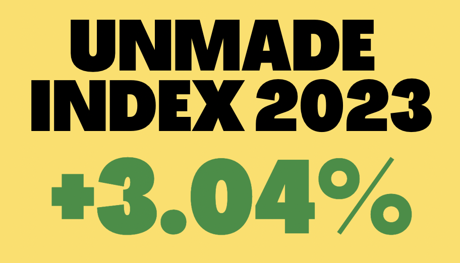 It was a contrast to the first year of the Unmade Index, which sank 39% from its 1000-point launch on January 4, 2022, to 611.58 points on December 30 2022.