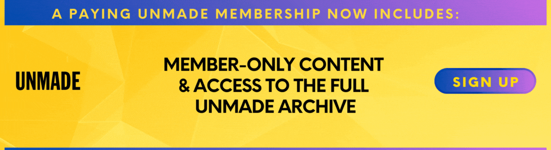 If you’ve been thinking about upgrading to an Unmade membership, this is the perfect time. Your membership also includes members-only content, access to our paywalled archives and your own copy of Media Unmade. Upgrade today.