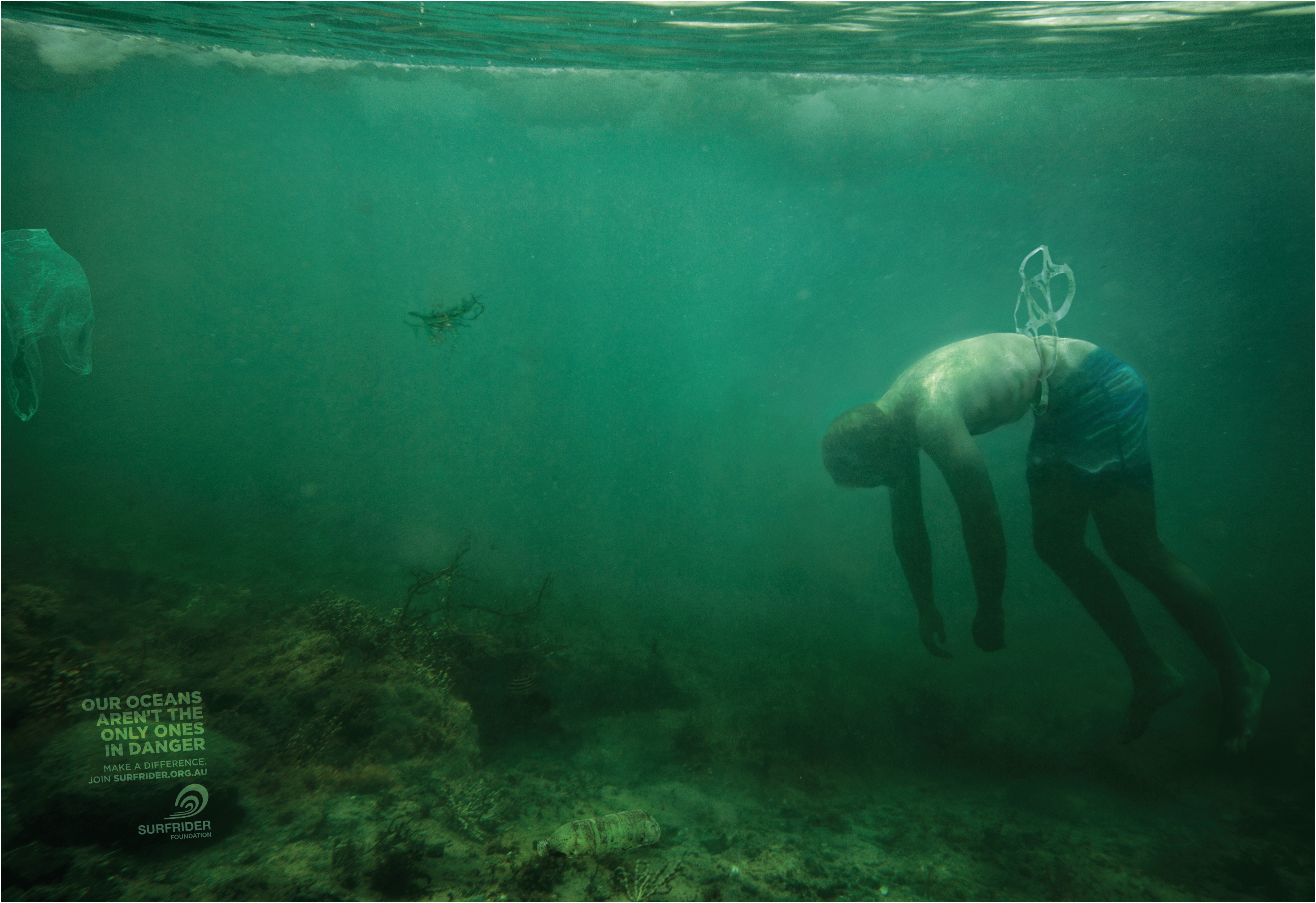 The ads, which carry the tagline “Our oceans aren’t the only ones in danger”, aim to drive traffic to the website surfrider.org.au.