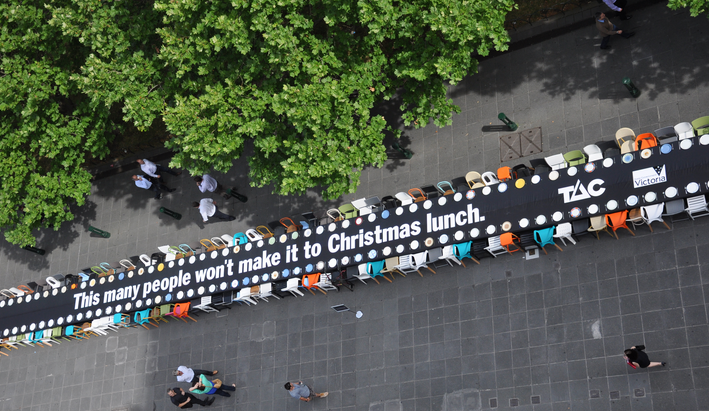 TAC stunt reminds Victorians of those who won’t be at Christmas lunch this year