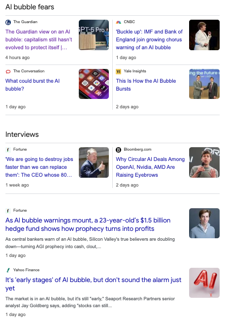 And the coverage of the AI bubble has started to arrive in the mainstream.