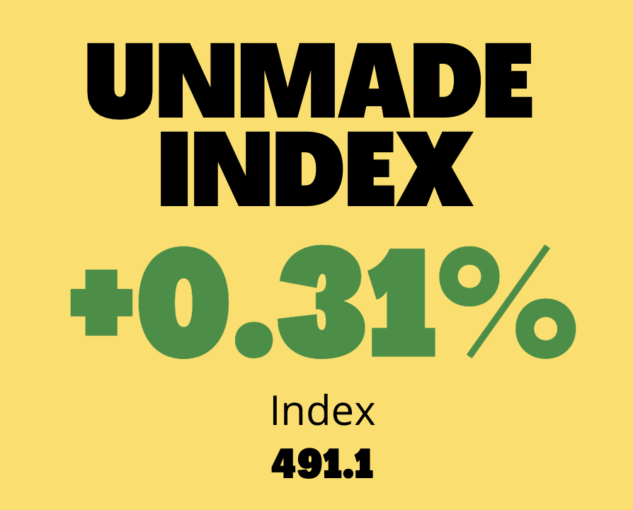 The Unmade Index closed up 0.31% for the day on 491.1 points.