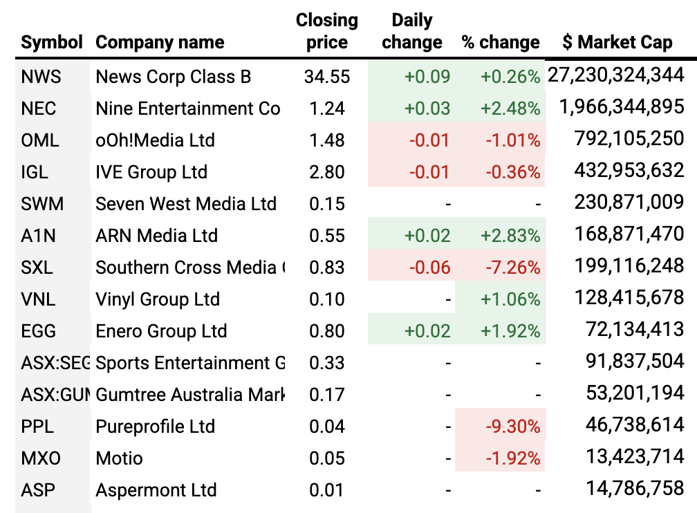 Meanwhile Nine’s shares improved by 2.5% giving it a market cap of $1.97bn, the best since the sale of its stake in Domain
