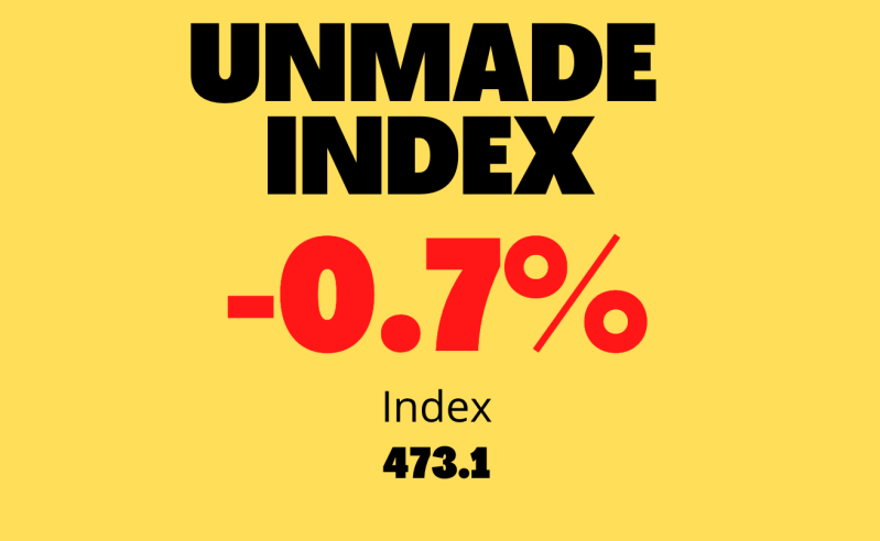 The Unmade Index closed on 473.1 points, a fall of 0.7% for the day.