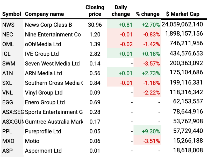 Nine also had a down day, with its 0.8% fall taking its valuation back below $1.9bn.