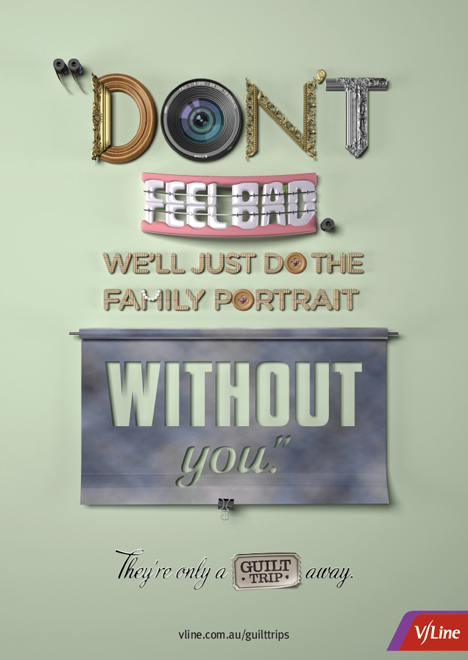 The campaign for V/Line, created by McCann and MRM, includes press, radio, outdoor, online and DM, that will enable users to send a personalised guilt trip message to friends via the website vline.com.au/guilttrips or buy a ticket for a city friend.